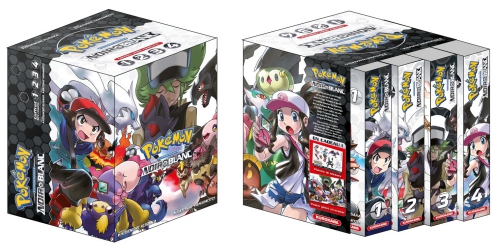 Scénario : Hidenoki Kusaka, Dessin : Satoshi Yamamoto _ Coffret Pokémon Noir et Blanc Double (tomes 1-2-3-4) _ Traduction : Fabien Vautrin _ Un coffret contenant les quatre volumes, un poster et une planche de stickers _ Éditions Kurokawa _ octobre 2025 _ Réédition, poche, sens de lecture japonais _ 40 euros