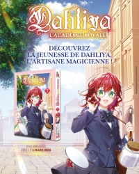 Scénario : Hisaya Amagishi, Dessin : Nina Akabane & Kei _ Dahliya, l’académie royale 👑📚 _ Edition Komikku _ Parution le 5 mars 2026 _ Inédit, poche, sens de lecture japonais _ 7,95 euros
