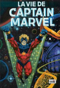 Scénario, Dessin & Couleurs : Jim Starlin, Textes : Mike Friedrich & Steve Englehart, Encrage : Mike Esposito, Chic Stone, Dave Cockrum, Pablo Marcos, Dan Green, Al Milgrom, Joe Sinnott, Klaus Janson & Jack Abel, Assistants coloristes : Linda Lessman, Paul Becton & Tom Vincent, Introduction : Al Milgrom _ La Vie de Captain Marvel _ Épisodes originaux : Captain Marvel 25-34, Iron Man 55, Marvel Feature 12 _ Edition : Semic B.O.O.K.S. _ janvier 1992 _ Inédit, moyen format, 236 pages couleurs _ 20 euros