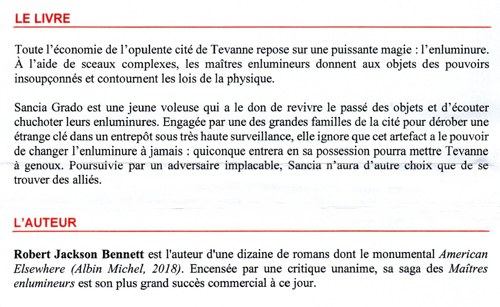 "Une conclusion spectaculaire !" dit l’éditeur. S’il le dit... C’est celle de la série "les maîtres enlumineurs". En feuilletant je suis surpris par le texte avec de longs passages en italiques et d’autres du genre : avec quelqu’un ou quelque chose capable d’ouvrir "n’importe quelle serrure"...