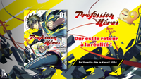 Scénario : Amanattou, Dessin : Hiro Hata, Character design : Suzuhito Yasuda _ Profession heros _ Traduction : Sébastien Ludmann _ Edition Komikku _ Parution le 4 avril 2024 _ Inédit, poche, sens de lecture japonais, 162 pages _ 7,99 euros