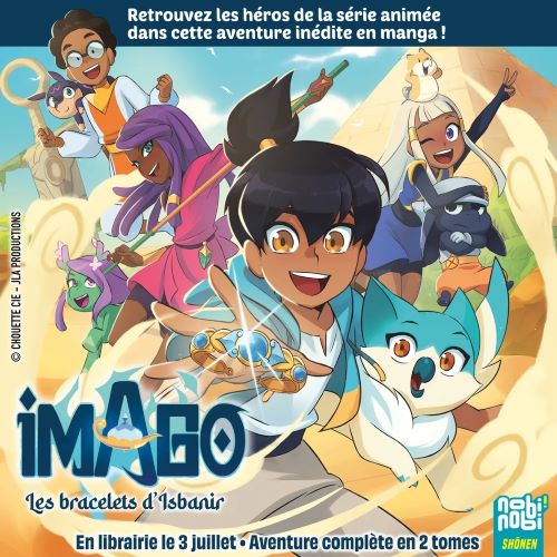 Scénario : Sylvain dos Santos & Mariam Hachmi, Dessin : Galang Tirtakusuma _ Imago – Les bracelets d’Isbanir _ Série complète en 2 tomes. Tome 2 prévu en 2025 _ Editions Nobi Nobi, Collection : Shônen _ Parution du tome 1 le 3 juillet 2024 _ Inédit, poche, sens de lecture japonais _ 7,90 euros