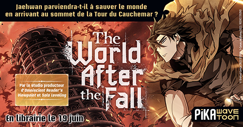 Scénario : S-Cynan, d’après l’œuvre originale de singNsong, Dessin : Undead Gamja (3B2S Studio) _ The World After The Fall tome 1 _ Titre original : Myeolmang Ihuui Segye / 멸망 이후의 세계, Traduction : Johanna Clausse _ Edition Pika, collection : Wavetoon _ juin 2024 _ Inédit, moyen format, sens de lecture occidental, 296 pages _ 14,95 euros