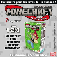 Scénario & Dessin : Kazuyoshi Seto _ Coffret regroupant les 3 premiers tomes du manga Minecraft, le manga officiel - Voyage au bout du monde _ Traduction : Jean-Benoît Silvestre _ Edition Nobi Nobi _ Parution le 5 novembre 2025 _ Réédition, poche, 576 pages, sens de lecture japonais _ 21,60 euros